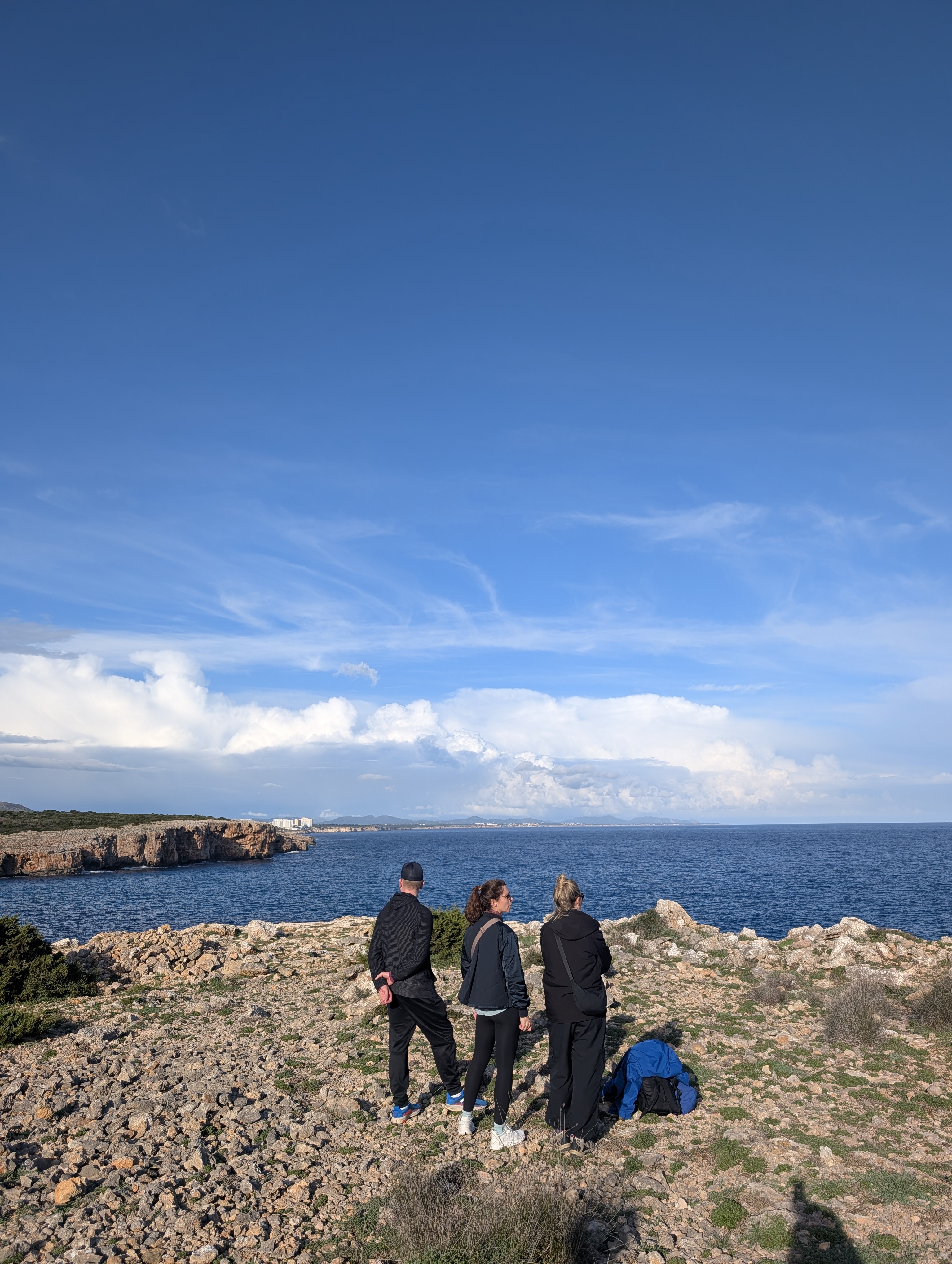 Wir folgen dem Schotterweg Camí de Salgar – und spüren sofort, wie der Weg uns erstmal langsam nach oben und dann nach unten führt, Richtung Wasser. Vor uns viele Felsen, ein atemberaubender Ausblick und viel Grün.